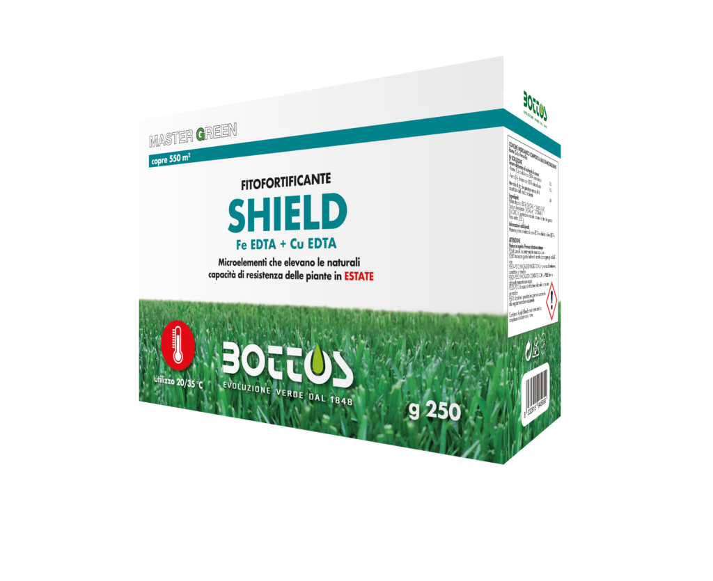Con l’arrivo dell’estate, il nostro tappeto erboso richiede una cura speciale per mantenere la sua bellezza e resistenza. In questo contesto, SHIELD è il fitofortificante ideale, progettato per elevare le capacità di resistenza delle piante durante la stagione estiva. Questa soluzione avanzata, a base di Ferro e Rame chelati EDTA, offre un supporto corretto alla nutrizione dei tappeti erbosi, garantendo un prato sano e bello.