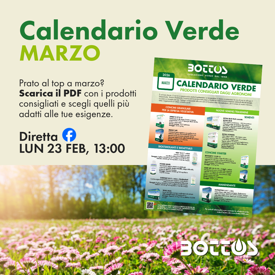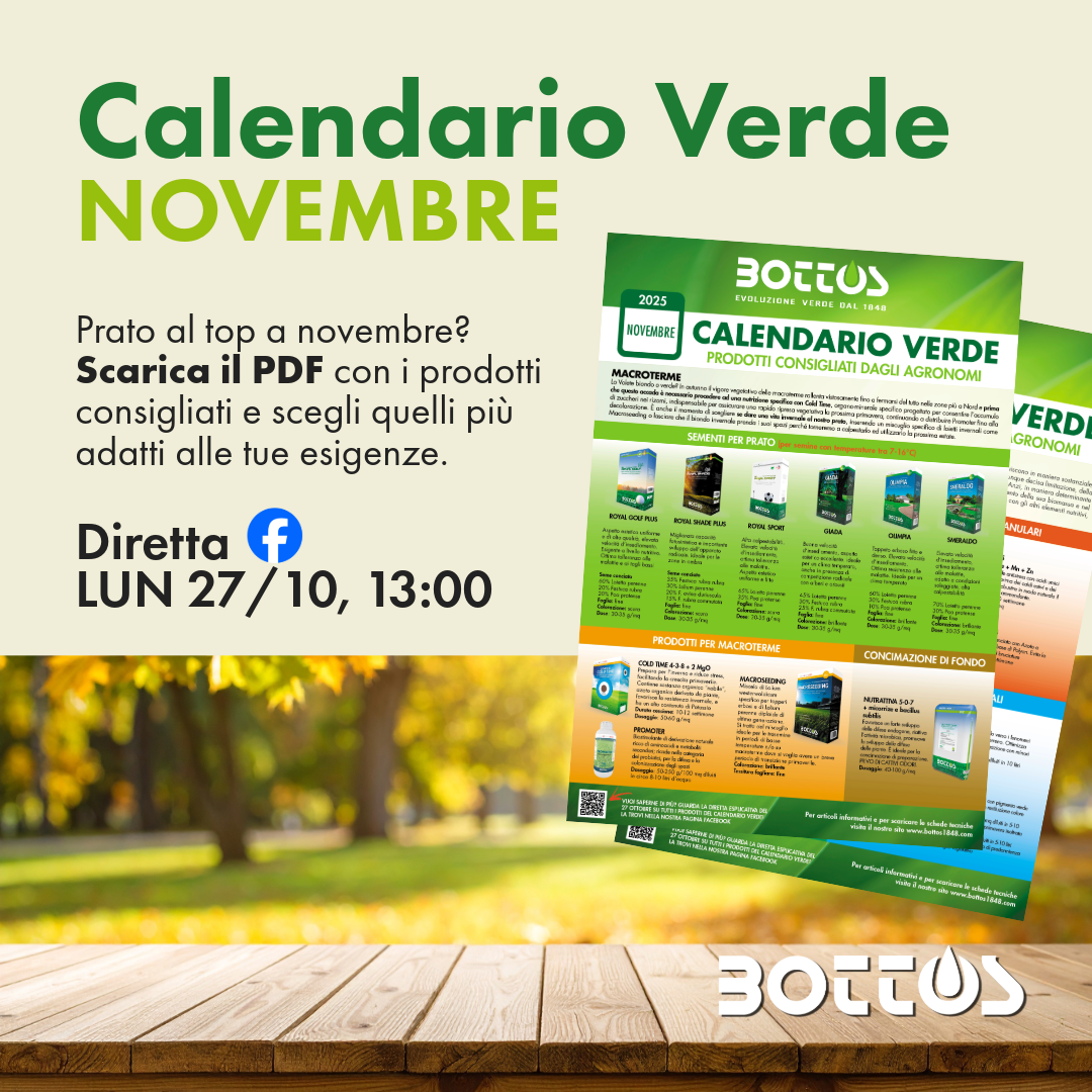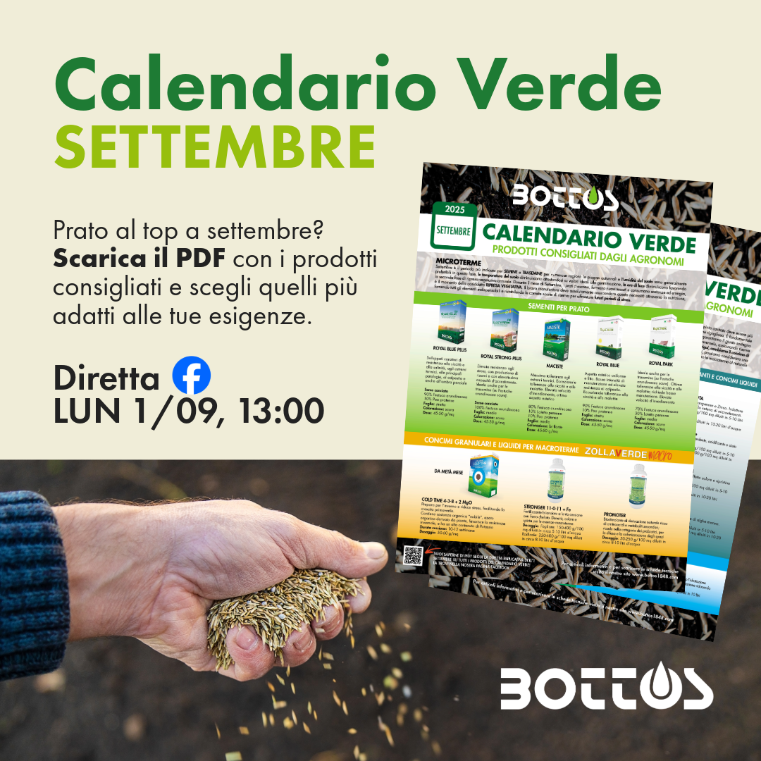 Ogni mese il tappeto erboso ha esigenze diverse. Con il Calendario Verde Bottos puoi sapere…